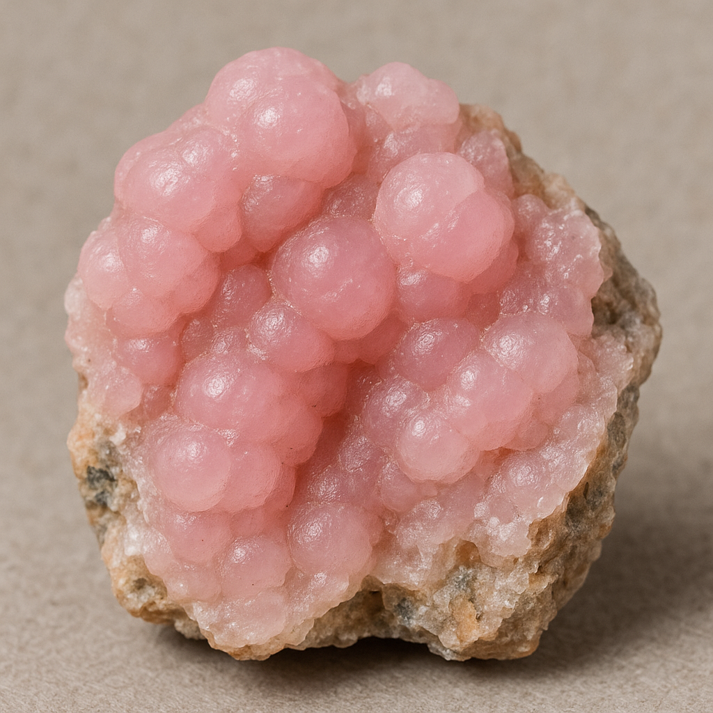 ピンクスミソナイトは、炭酸亜鉛鉱物(Smithsonite)の一種で、淡いピンク色からローズピンクまで、優しい色合いが特徴です。