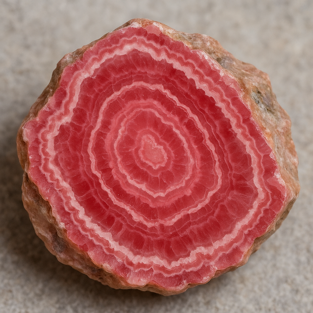 特にアルゼンチン産のものは透明感のある赤〜ピンクが美しく、宝石質としても人気があります。柔らかい鉱物なので、アクセサリーとして使うときは衝撃や水に注意しましょう。