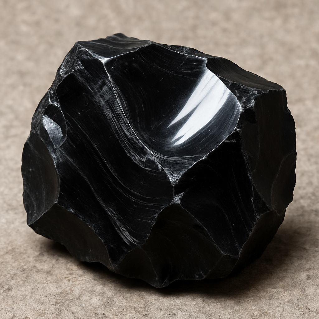 - 特徴:火山活動によって溶岩が急速に冷えてできた天然ガラス。ガラス質のため光沢が美しく、カットや研磨によって鏡のように輝きます。
